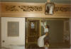 This shows the intricate wood carving which separates the rooms.