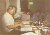 After dinner, eating boiled beans, drinking beer, and talking family history.