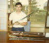 Mike holding one of the family swords. They have several.